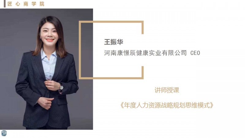 三、15:50-16:00 課間休息 《年度人力資源戰(zhàn)略規(guī)劃思維模式(二)》——河南康憬辰健康實業(yè)有限公司 CEO 王振華女士