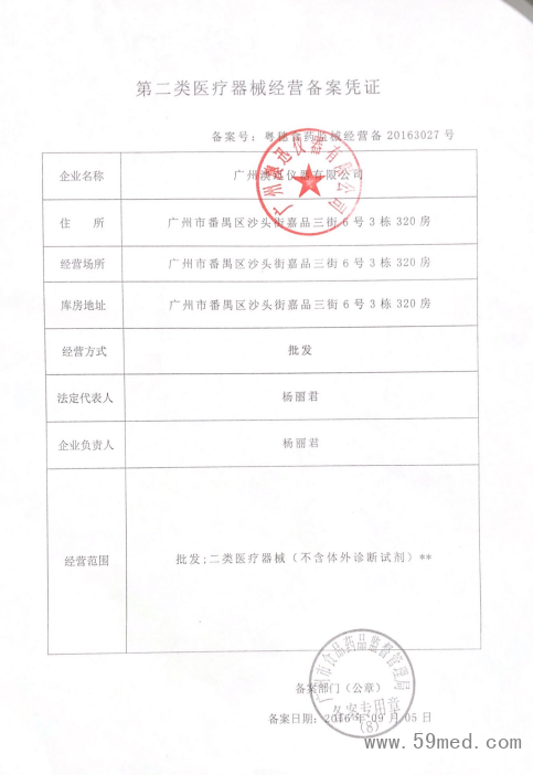 第二類醫(yī)療器械經(jīng)營備案憑證