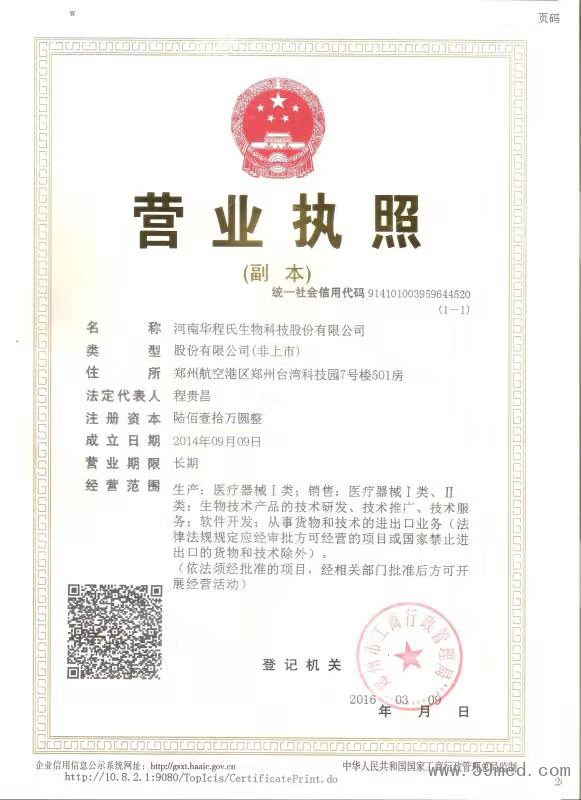 | 發(fā)證機(jī)構(gòu): | ??鄭州市工商行政管理局 | 發(fā)證時(shí)間 : | ??2016-03-09 |