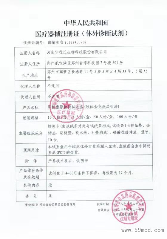 榮譽(yù)資質(zhì) 中華人民共和國(guó)醫(yī)療器械注冊(cè)證(體外診斷試劑)
