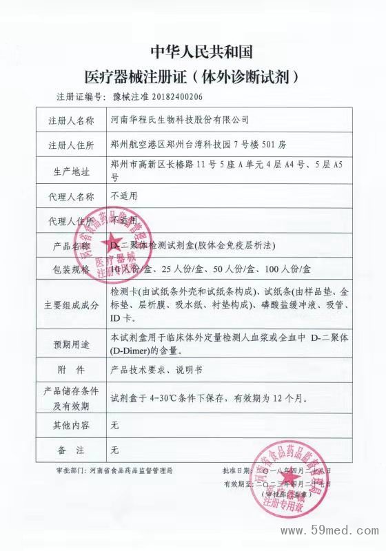 榮譽(yù)資質(zhì) 中華人民共和國(guó)醫(yī)療器械注冊(cè)證(體外診斷試劑)