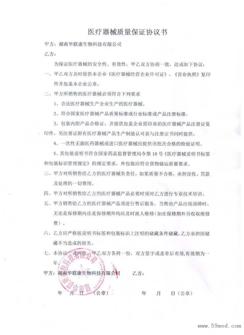 醫(yī)療器械質(zhì)量保證協(xié)議書