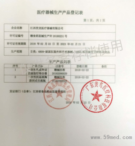 醫(yī)療器械生產(chǎn)產(chǎn)品登記表