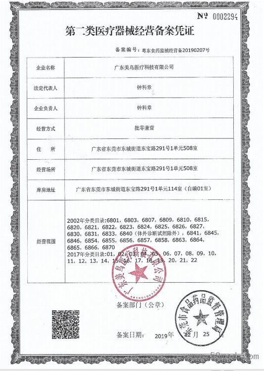| 發(fā)證機(jī)構(gòu): | ??東莞市市場監(jiān)督管理局 | 發(fā)證時(shí)間 : | ??2019-12-25 |