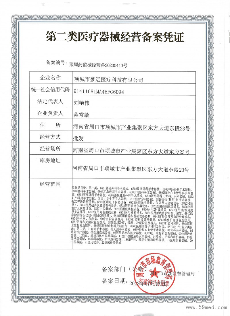 第二類醫(yī)療器械經(jīng)營備案憑證
