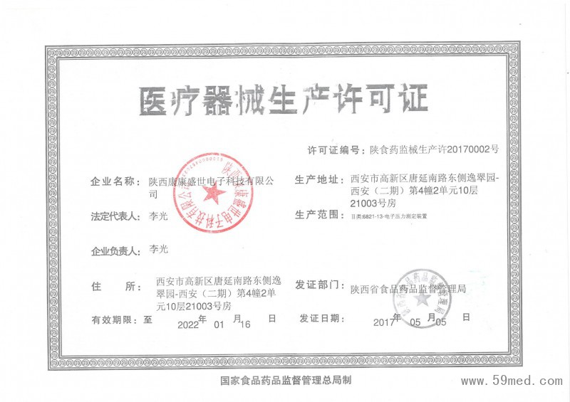 | 發(fā)證機(jī)構(gòu): | ??陜西省食品藥品管理局 | 發(fā)證時(shí)間 : | ??2017-05-05 |
