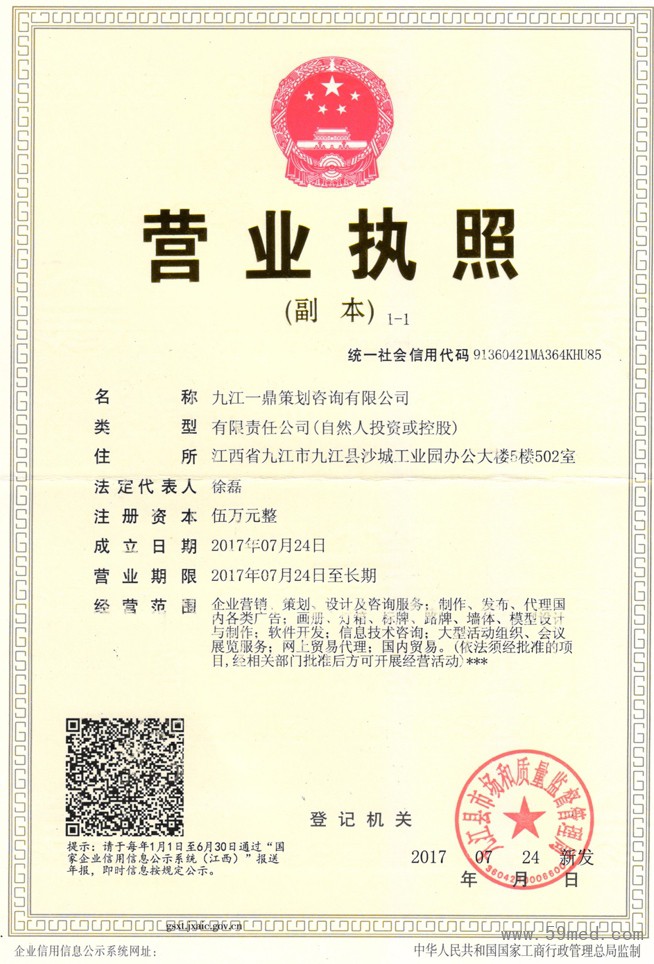 | 發(fā)證機(jī)構(gòu): | ??九江縣市場(chǎng)監(jiān)督管理局 | 發(fā)證時(shí)間 : | ??2017-07-24 |