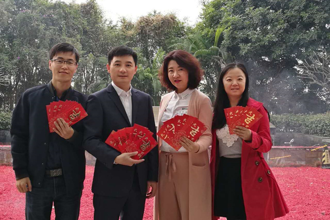 公司管理層為大家派發(fā)開工新年利是,熱熱鬧鬧迎新春。整個(gè)藍(lán)韻影像園沐浴在歡樂喜慶的氣氛中。