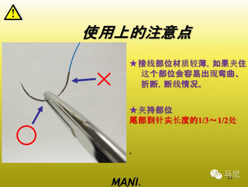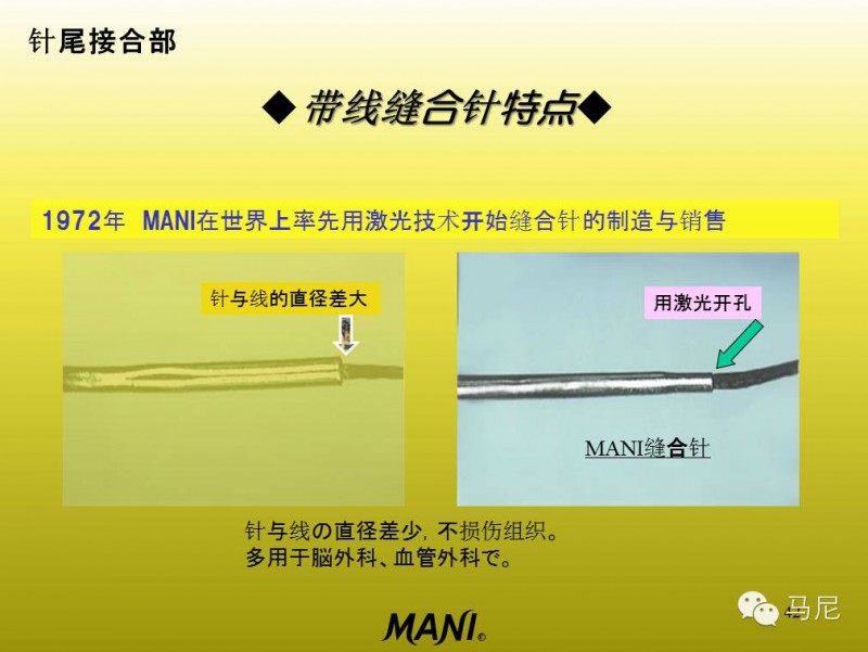 而馬尼的縫合針有如下特點