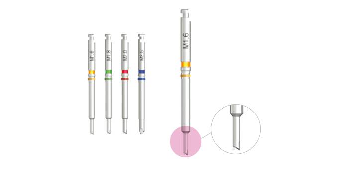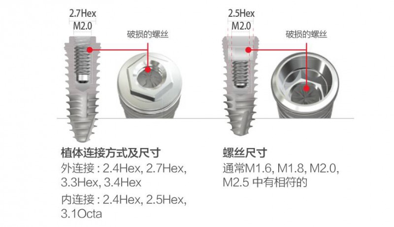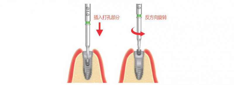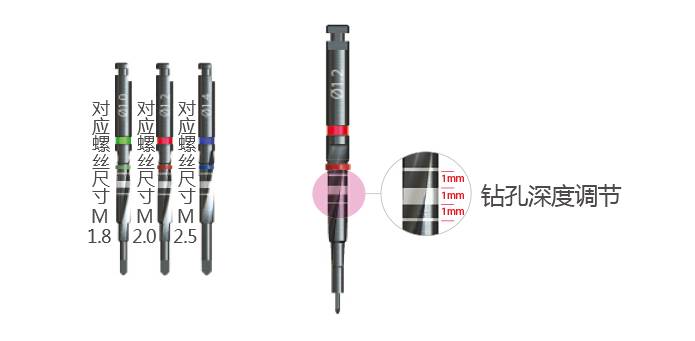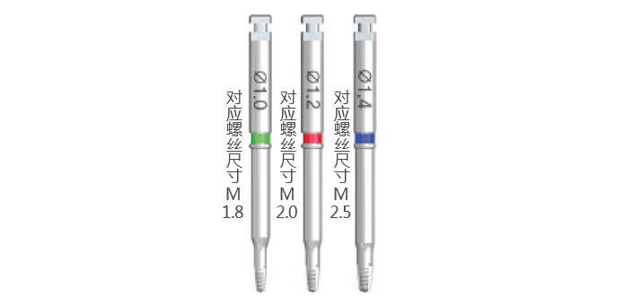 在用于無法使用精確內(nèi)定位器時或種植體內(nèi)螺絲下方2mm以下深度處破損時連接打孔鉆使用起到導(dǎo)入作用。