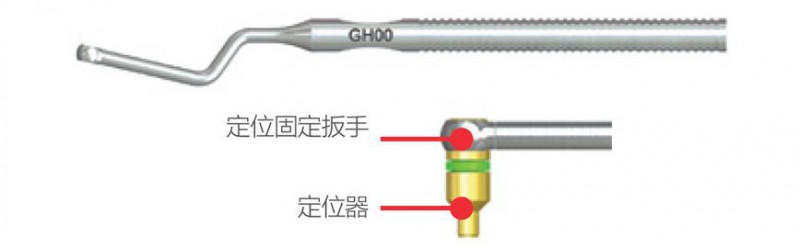 使用定位器連接桿,將精確內(nèi)定位器固定到植體內(nèi)部,方便導(dǎo)入打孔鉆。