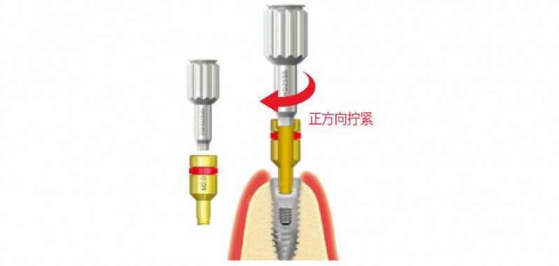①使用定位器連接桿將精確內(nèi)定位器固定到植體內(nèi)部。