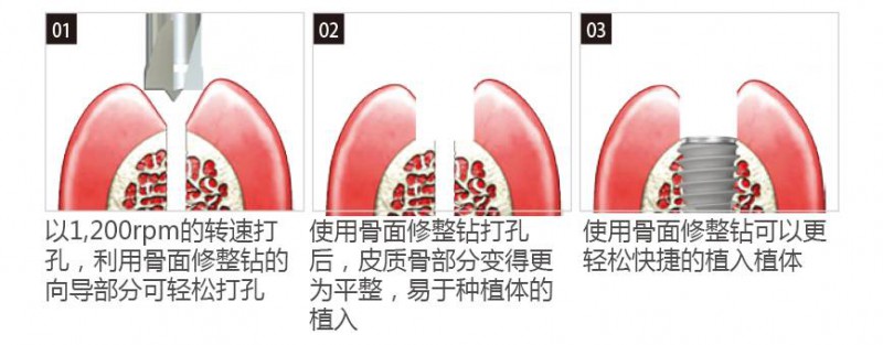 詳細(xì)信息 Accessory Kit(種植手術(shù)輔助工具盒) 1、牙齦環(huán)切鉆 ![]() <使用指南> ![]() 2、直徑定位鉆 ![]() <使用指南> <使用指南> 周邊修整鉆![]() <使用指南> ![]() 5、極速螺絲刀 ![]() *500-1,000rpm/1-2Ncm。 <使用指南> <優(yōu)點> 1、消除了手動連接的不便 2、在后牙區(qū)操作時十分便利 3、大幅縮短手術(shù)時間(分鐘內(nèi)即可完成連接) 4、快速安全地完成連接(1~2Ncm范圍內(nèi)可以空轉(zhuǎn)) |