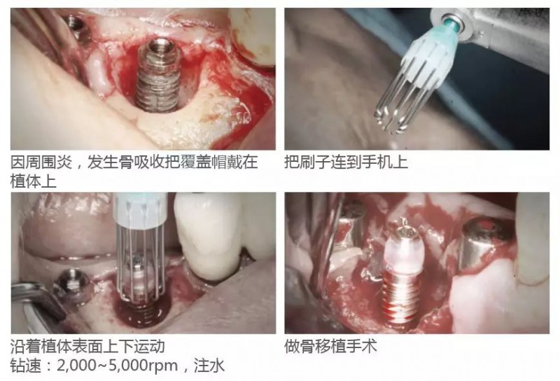 通過在種植體周圍高速旋轉,清除周圍炎癥,從而有利于延長種植體使用壽命