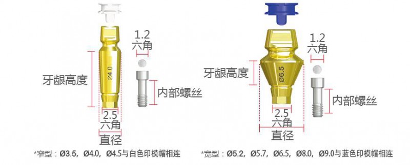 *特色:內(nèi)部有1字形狀結(jié)構(gòu),在托盤印模上再把印模轉(zhuǎn)移桿(Coping)放置時易于確定方向。